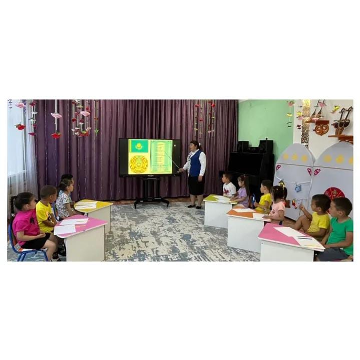 Мемлекеттік рәміздер жоспарына орай, ересек «Айгөлек» тобының тәрбиеленушілерімен «Рәміздер - елдігімнің белгісі!» тақырыбында сурет көрмесі өткізілді
