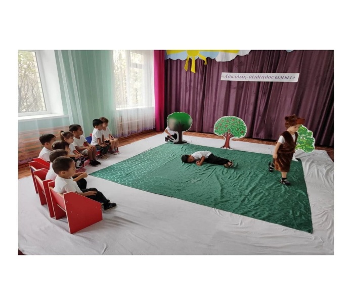02.11.2023жыл. Аралас ересек «Айгөлек» тобының тәрбиеленушілері арасында Адалдық- алаңы жоспарына сәйкес «Адалдық біздің досымыз» тақырыбында көрініс өткізілді