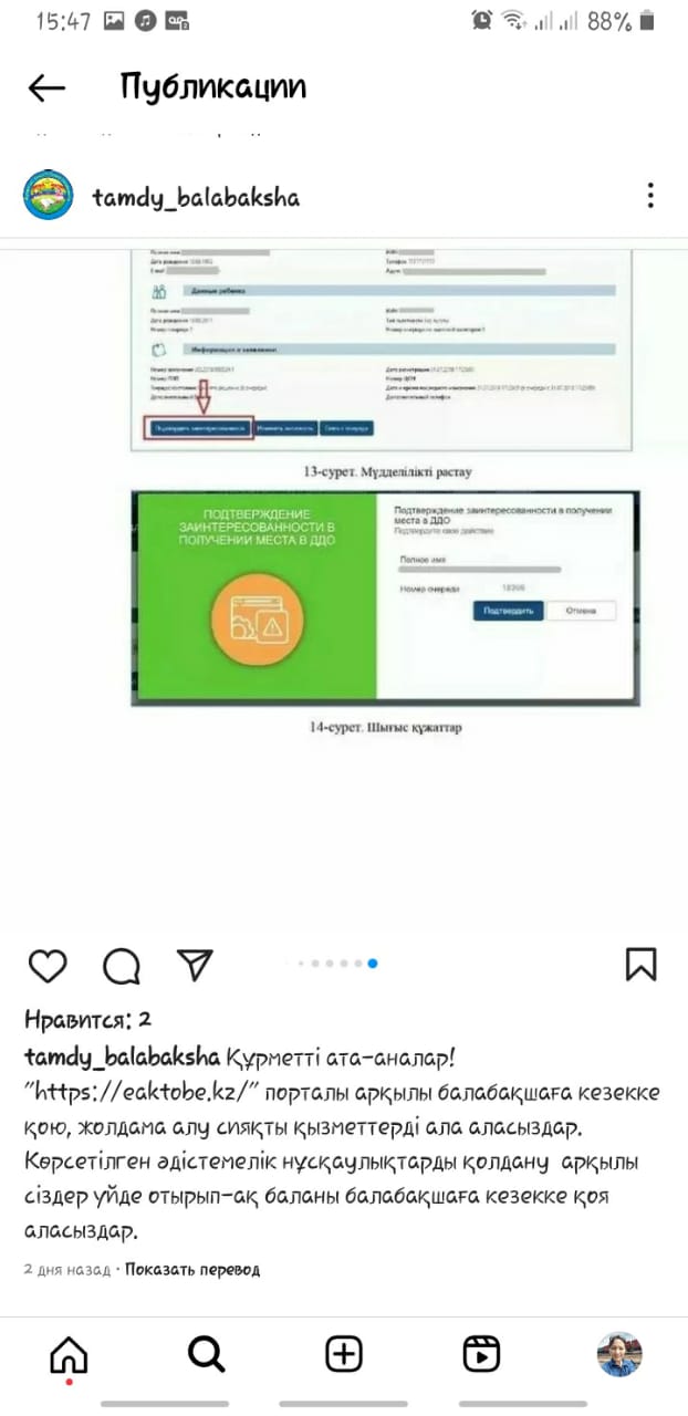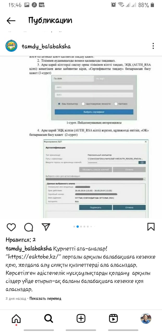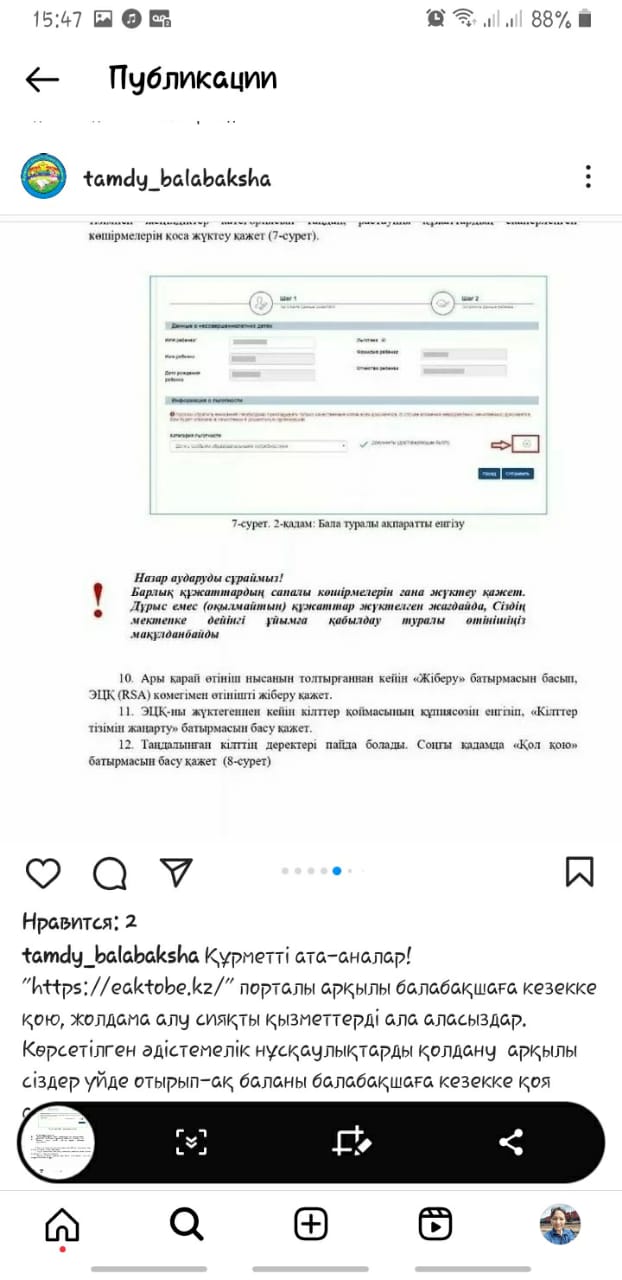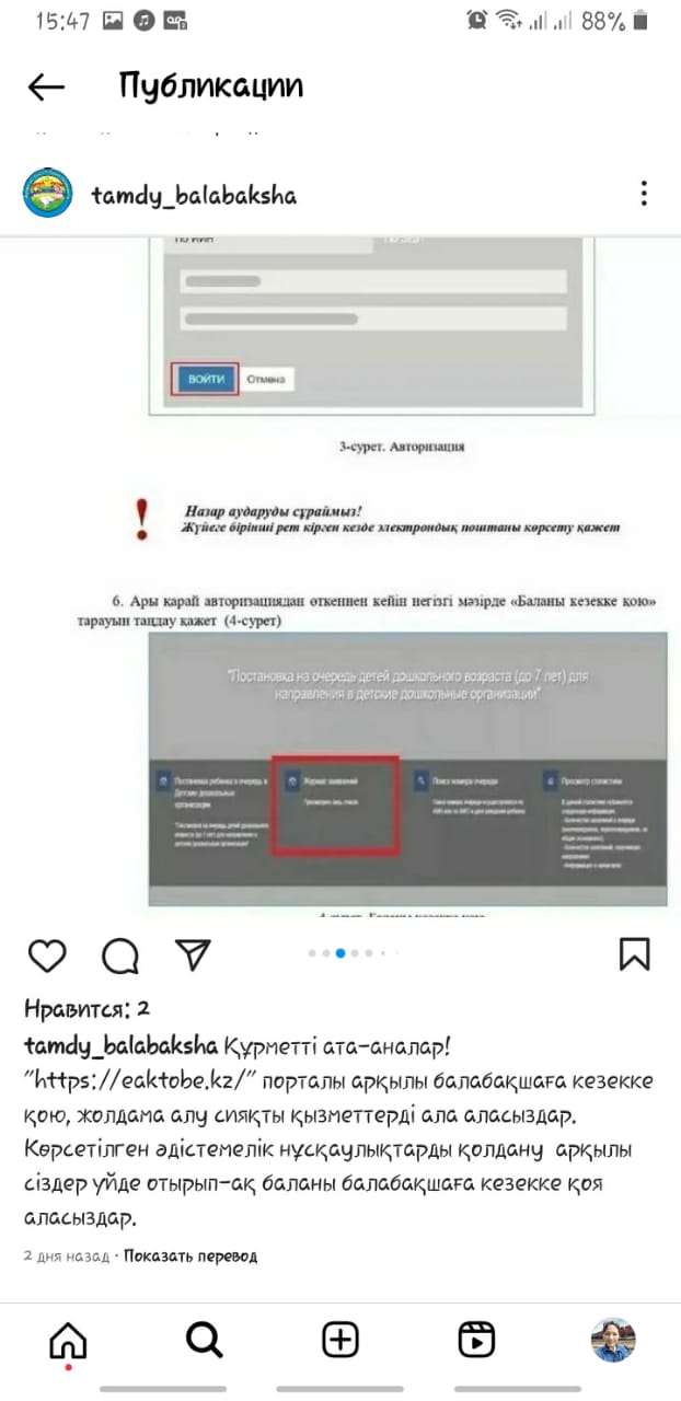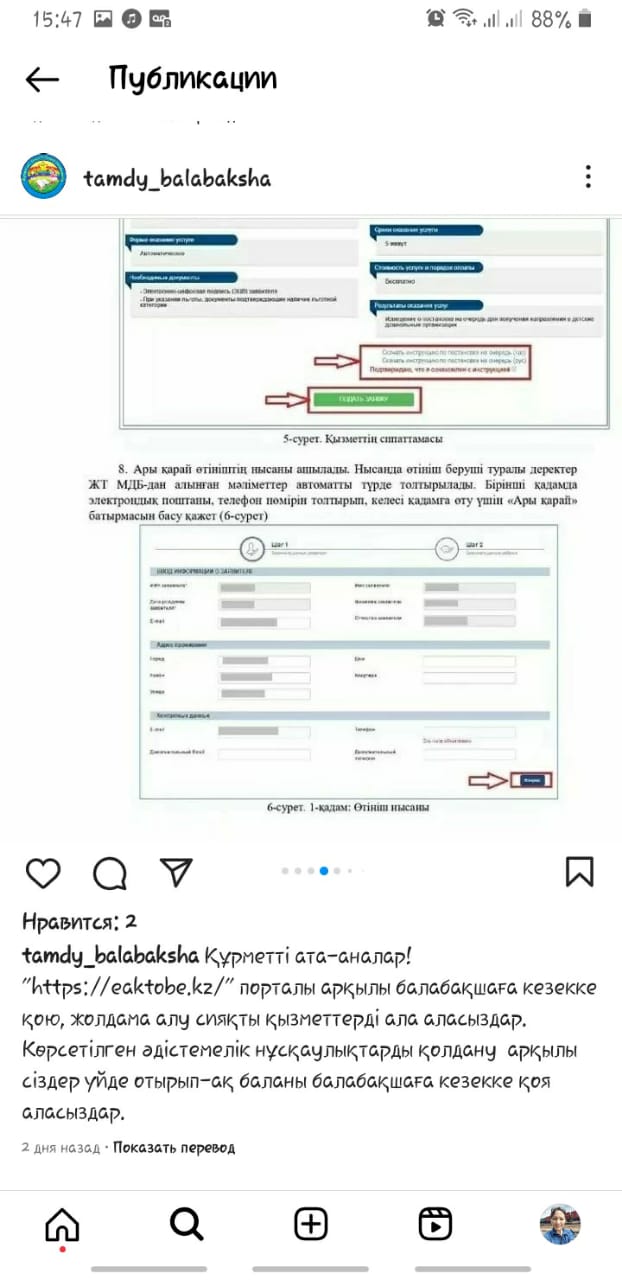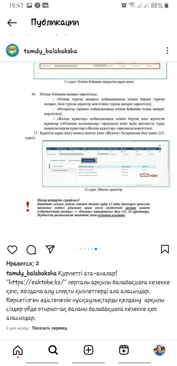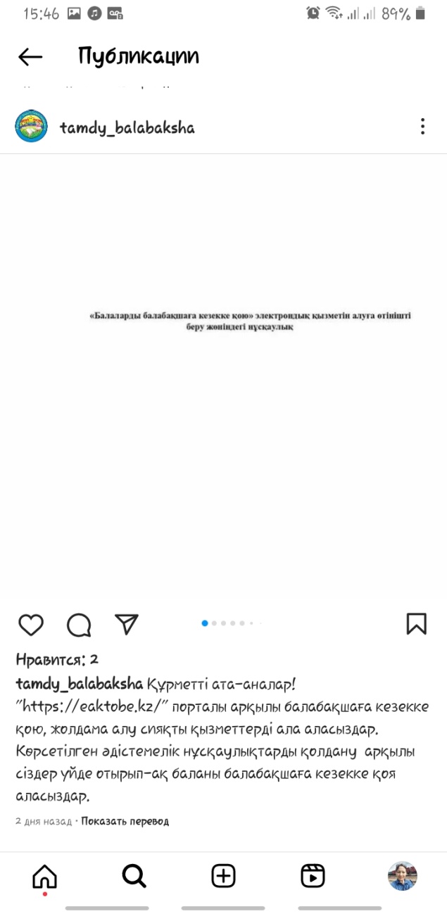 20.05.2023 жыл. Құрметті ата- аналар! «https://eaktobe.kz/» порталы арқылы балабақшаға кезекке қою, жолдама алу сияқты қызметтерді ала аласыздар. Көрсетілген әдістемелік нұсқаулықтарды қолдану арқылы сіздер үйде отырып- ақ баланы балабақшаға кезекке қоя аласыздар.