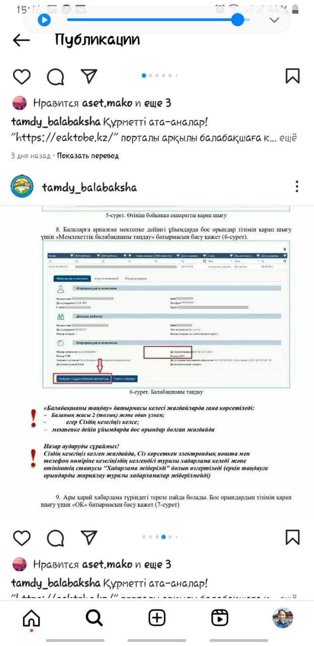 20.05.2023 жыл. Құрметті ата- аналар! «https://eaktobe.kz/» порталы арқылы балабақшаға кезекке қою, жолдама алу сияқты қызметтерді ала аласыздар. Көрсетілген әдістемелік нұсқаулықтарды қолдану арқылы сіздер үйде отырып- ақ баланы балабақшаға кезекке қоя аласыздар.